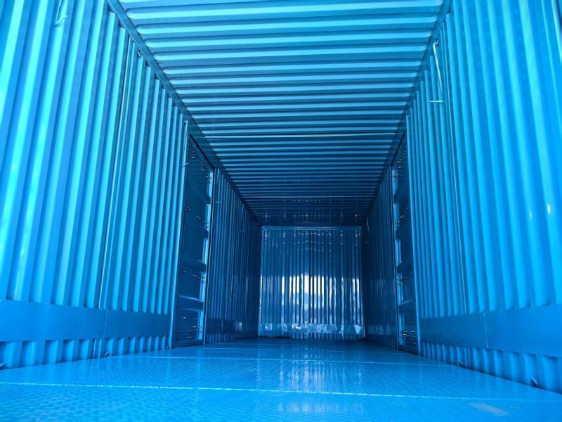 10000×2450×2500mm, plaque de fond à motifs de 3mm, panneaux latéraux ondulés de 2mm (structure ondulée verticale), deux portes, 1 porte latérale, avec couvercle supérieur.